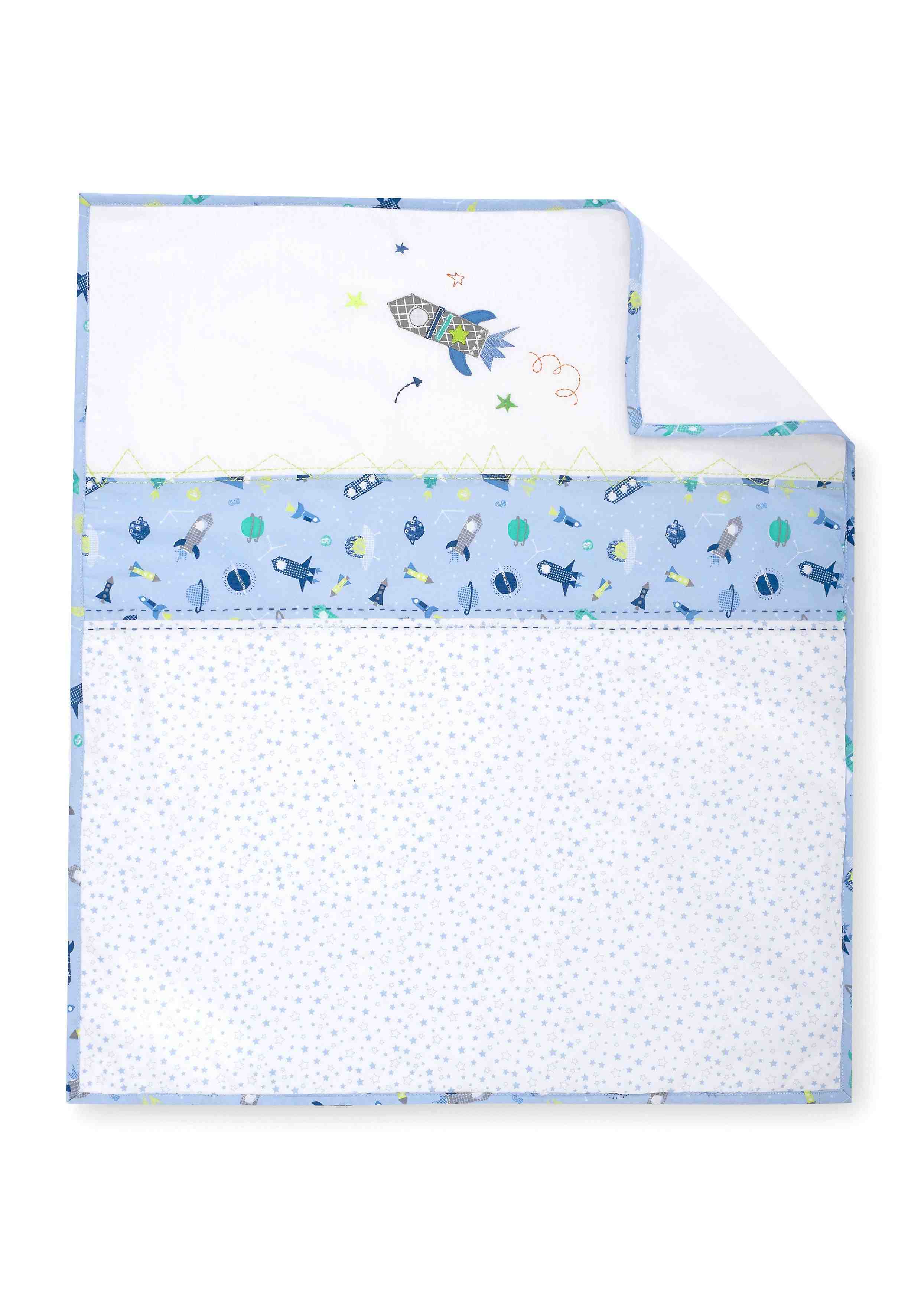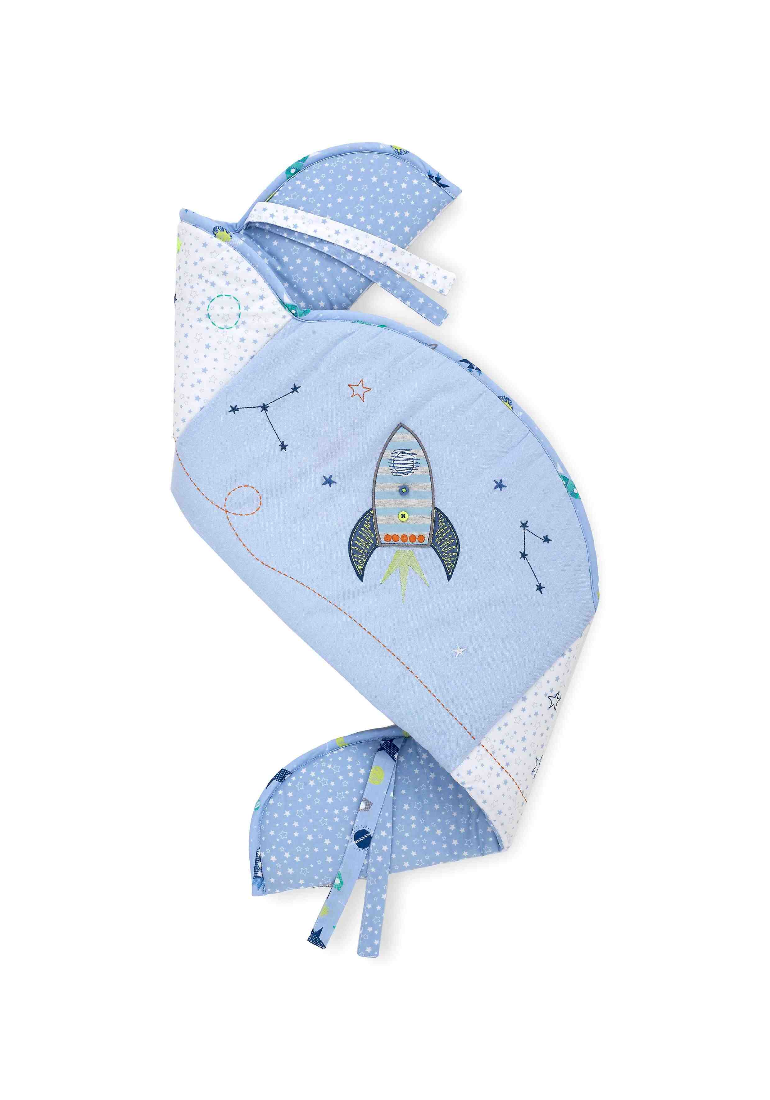 ست سهتکه خواب نوزاد Mothercare مدل SPACE DREAMER. شامل:یک عدد محافظ تخت (Bumper)یک عدد پتوی نرم (Covelet)یک عدد ملحفه کشدار (Fitted Sheet)طراحی ملایم با طرح خرس کوچولو و رنگهای آرامشبخش مناسب سیسمونی نوزادقابل استفاده برای تخت نوزاد با ابعاد استانداردقابل شستشو با ماشین لباسشویی ,کیفیت اورجینال برند Mothercare (انگلستان) شامل بامپر سایز: ۲۳×۱۱۵ _ پتوی نرم : ۶۱×۷۱ _. ملحفه تشک سایز : ۳۸×۸۹