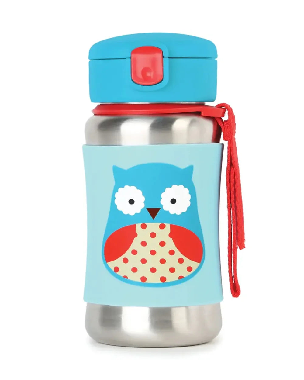 قمقمه استیل کودک طرح جغد از برند skip hop ، از استیل ضدرنگ با کیفیت بالا ساخته شده تا نوشیدنی ها را خنک و تازه نگه دارد و در عین حال ایمن و بدون مواد مضر (bpa free) باشد.